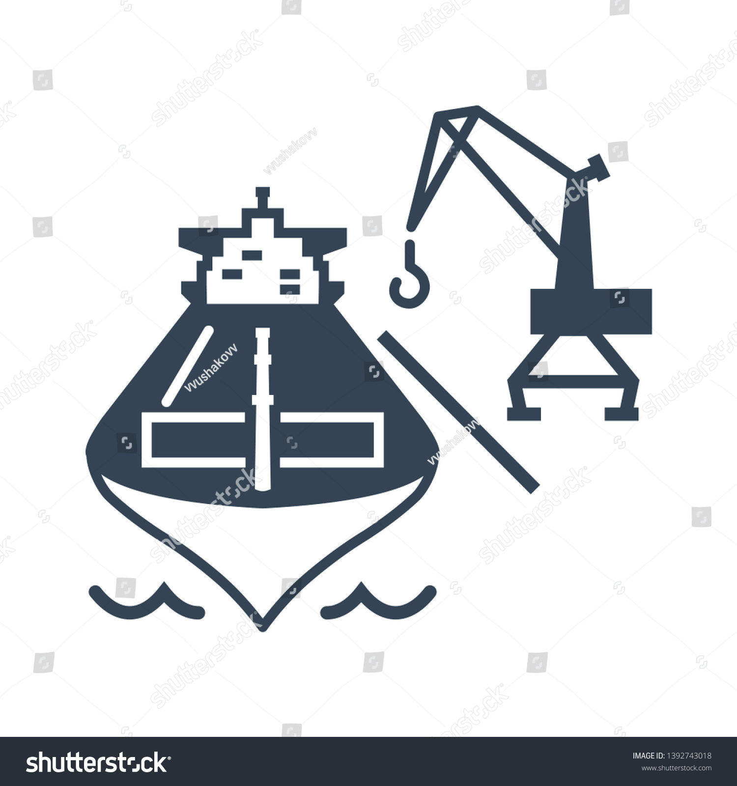 Black Icon Loading Unloading Cargo Ship Stock Vector Royalty Free 1392743018